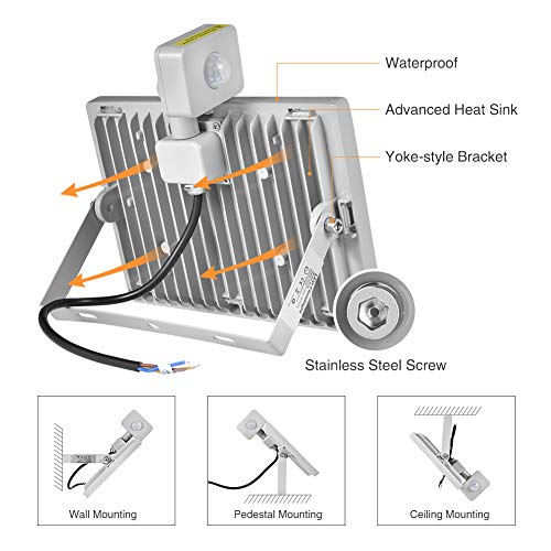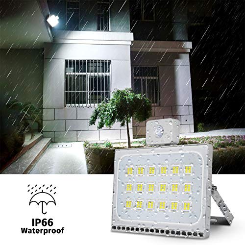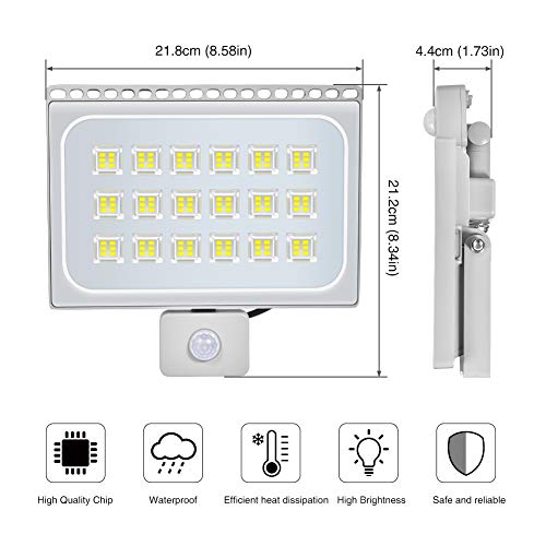 Reflektor LED 100 W, wodoodporny IP65, światła bezpieczeństwa z czujnikiem ruchu, 10000 lm 6500 K zimna biel światła bezpieczeństwa na zewnątrz światło ogrodowe na plac zabaw podwórko magazyn garażu [klasa energetyczna A+]