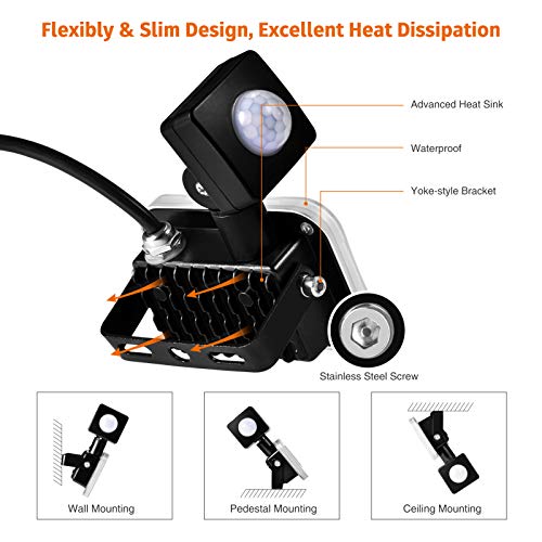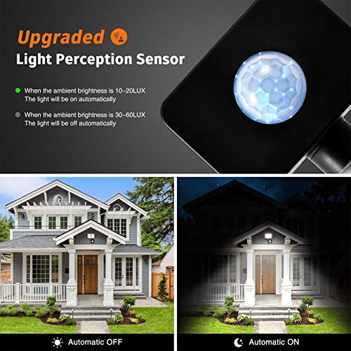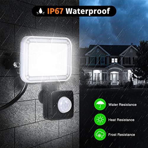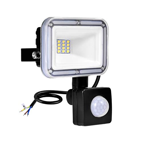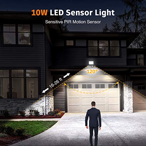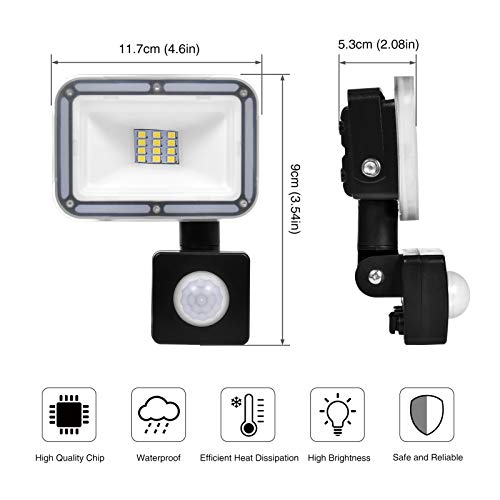 Reflektor Zewnętrzny z Czujnikiem Ruchu 10W Lampa Bezpieczeństwa 800LM Oświetlenie Zewnętrzne 6500K Zimna Biel Wodoodporny IP67 Zewnętrzne Światło Robocze dla Garażu Ogrodowym Taras Billboard Stadion