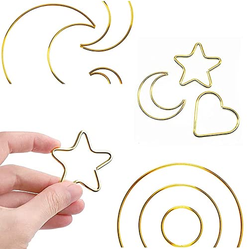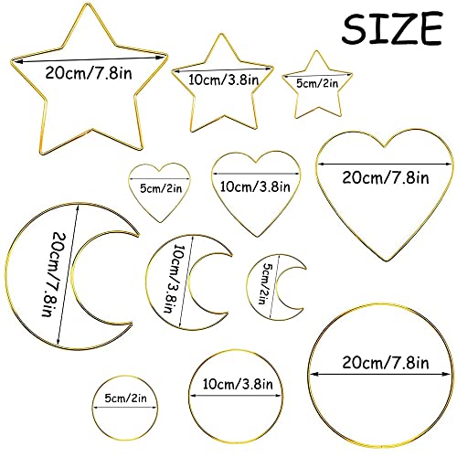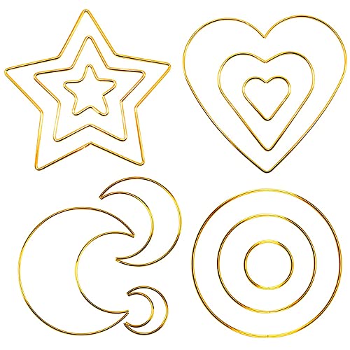 12 szt. łapacz snów, kreole kwiatowe makramy, metalowe obręcze do makramy, pierścienie do makramy, rękodzieło DIY, kształt serca | księżyc | gwiazda | okrągły (3 rozmiary) do dekoracji wieńca weselnego, makramy do powieszenia na ścianie (złoty)