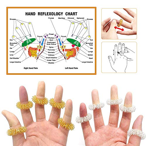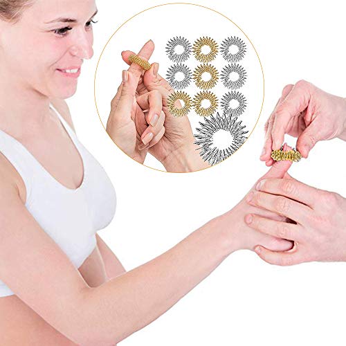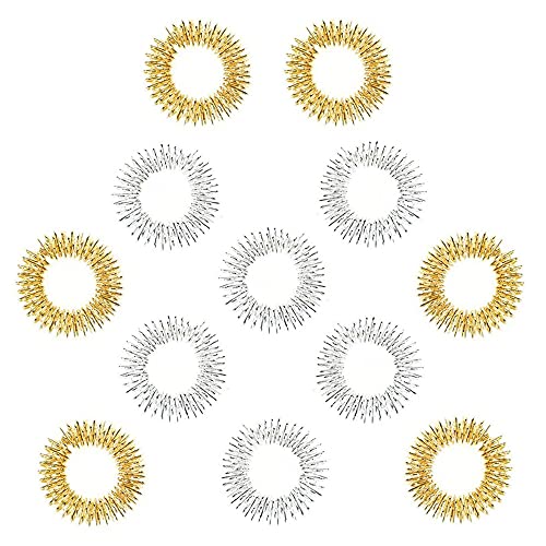 12 sztuk pierścieni do masażu palców – stal nierdzewna Spiky Sensory do masażu palców, akupunktura, krążek do masażu stawów, pierścień do masażu dla młodzieży, dorosłych, redukujący stres (kolor srebrny i złoty)