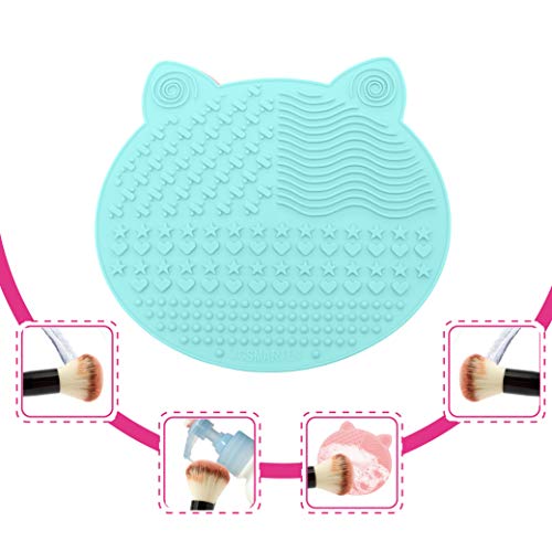 [2-pak] Mata do czyszczenia pędzla do makijażu, uroczy kot zwierzę wzór silikonowa przenośna szczotka do czyszczenia podkładka narzędzia do czyszczenia z przyssawkami (zielona + różowa)