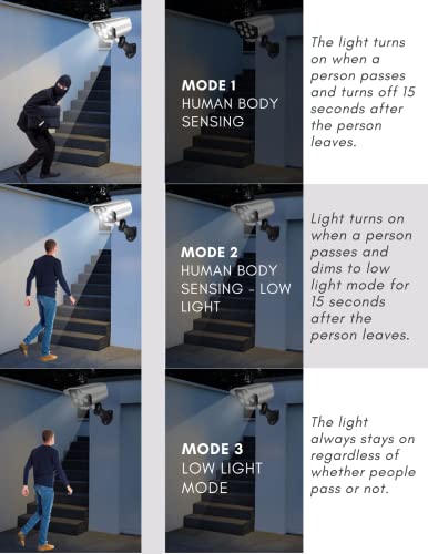 • TRYBY UŻYTKOWANIA: Zaprojektowany z 3 trybami użytkowania sterowanymi pilotem. Tryb 1: Wykrywanie ludzkiego ciała ” Światło włącza się, gdy osoba przechodzi i wyłącza się 15 sekund po jej wyjściu. Tryb 2: Wykrywanie ludzkiego ciała – Słabe oświetlenie: światło włącza się, gdy osoba przechodzi obok osoby, a tryb światła jest zminimalizowany na 15 sekundy po wyjściu osoby Tryb 3: Tryb słabego oświetlenia: światło jest zawsze włączone, niezależnie od tego, czy ludzie przechodzą obok, czy nie.