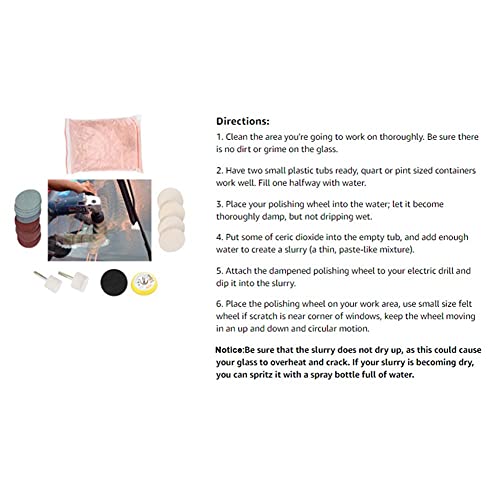 ✅ KOMPLETNY ZESTAW: 34-częściowy: KOMPLETNY ZESTAW: 34-częściowy zestaw do polerowania szkła zawiera proszek polerski, tarcze polerskie i tarcze ścierne zapewniające profesjonalne rezultaty