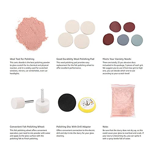 Zestaw do polerowania szkła, 34 szt., proszek polerski, tarcza polerska, tarcza ścierna do przedniej szyby i szkła