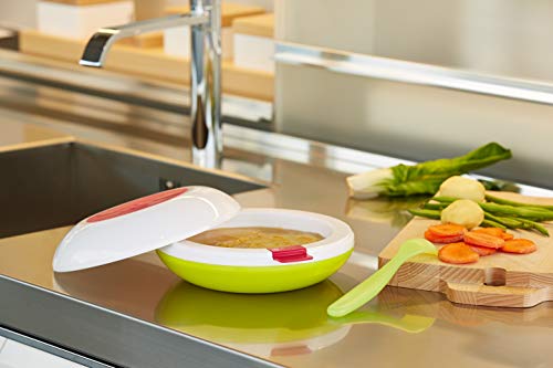 Einzelheiten: Die Warmhalteplatte hält das Essen in der richtigen Temperatur während der Mahlzeit warm: Dabei füllen Sie einfach de beträchtlichen Behälter mit heißem Wasser. Bei Bedarf können Sie die Abdeckung in auch als eine zweite Platte benutzen. Die rutschfeste Unterlage hält sich bei allem Artikel von Oberflächen fest, so dass die Fütterung sicherer und sauberer bleiben kann. Altersempfehlung 6m +. Bedienungsanleitung anbei..