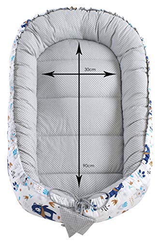• Im Inneren wurde eine weiche Watte eingenäht, des Babys Weichheit und Komfort bietet und beseitigt das Gefühl von Unannehmlichkeiten unter dem Rücken des Babys . Es ist möglich, einen doppelseitigen (Minky und Baumwolle) Einsatz zu verwenden, der das Reinigen des Kokons erleichtert.