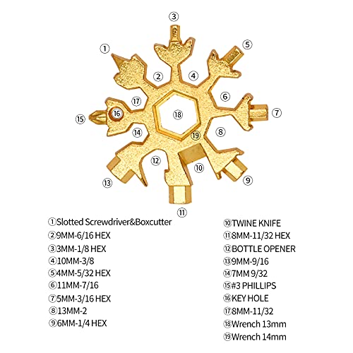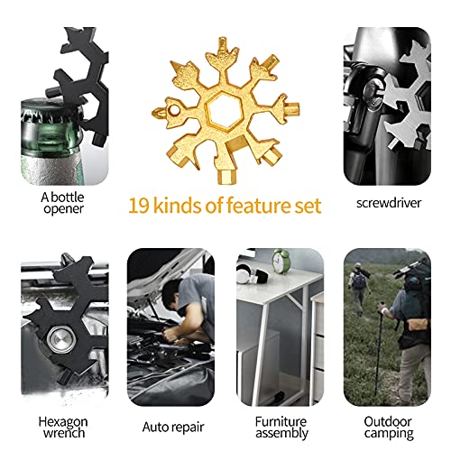 • NAJLEPSZY PREZENT: Wielofunkcyjne narzędzia w kształcie płatka śniegu mają piękny wygląd. Każde narzędzie do płatków śniegu jest wyposażone w mały metalowy pierścień do dekoracji Twojego breloka. Jest bardzo odpowiedni jako prezent urodzinowy lub świąteczny dla rodziny lub przyjaciół.