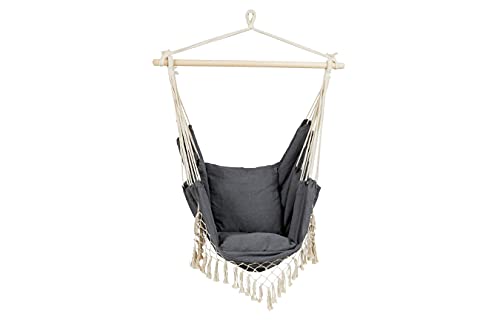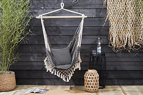 909 OUTDOOR Wiszące Krzesło z Poduszkami, Szare Krzesło Hamakowe z Frędzlami, Krzesło Wiszące z Miękkiej Bawełny, Wiszące Siedzisko na Ogród i Taras