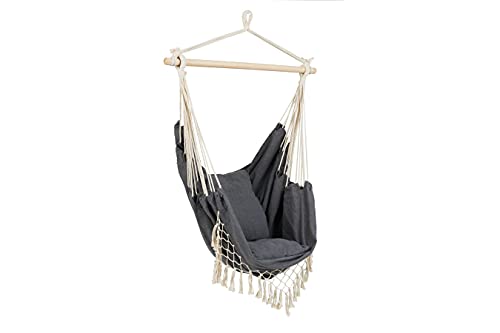• Fotel wiszący: Czy jest coś bardziej relaksującego niż siedzenie na wygodnym wiszącym krześle, ciesząc się przyrodą i odpoczywając patrząc na zachód słońca? To wiszące krzesło jest idealne na chwile relaksu i odpoczynku. Konstrukcja wiszącego siedziska jest wykonana z bawełny i drewna, a poduszka relaksacyjnego fotela jest niezwykle wygodna.