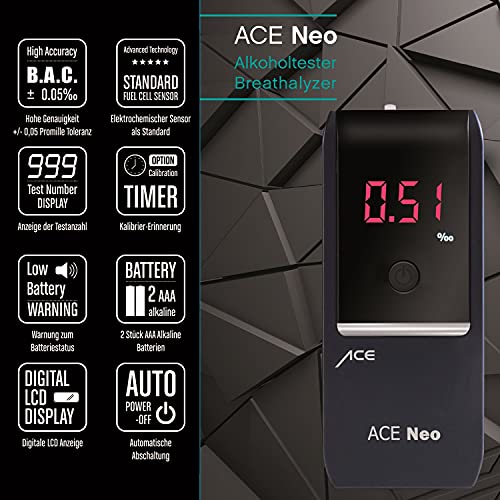 ACE 100051 Alkomat Neo, dokładność pomiaru TU-Wiedeńskiego: 95,70% – dokładność policyjna (granatowy)