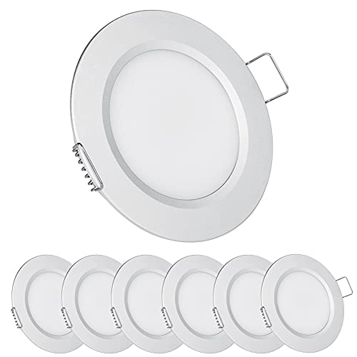 Acegoo 12V LED Reflektory sufitowe do zabudowy punktowe, downnlight, punktowe sufitowe, wpuszczana lampa sufitowa 2.5 W, dla Camper Van Cabin Truck Motorhome Żaglówka Pod Szafką Kuchnia Łazienka Srebrny 5000K, 6 sztuk