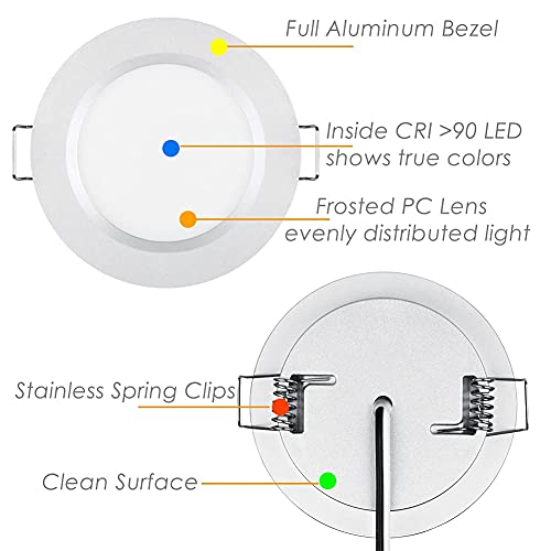 • Montaż wpuszczany – Średnica 68 mm, grubość 13 mm. Średnica otworu montażowego 57mm – 64mm. Montaż podtynkowy z zaciskami sprężynowymi, bez. Oprawa oświetleniowa stabilnie siedzi równo z sufitem lub powierzchnią szafki, bardzo schludnie i czysto wygląda