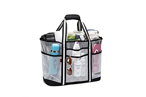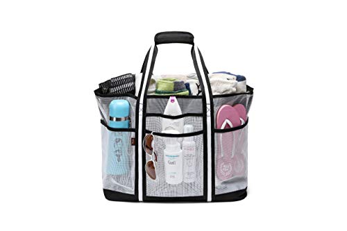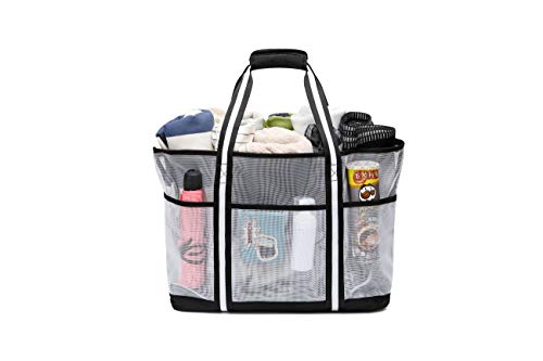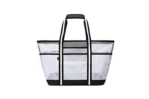 Acmebon Trwała duża siatkowa torba plażowa dla kobiet, torba na zakupy, torba na siłownię z 9 kieszeniami