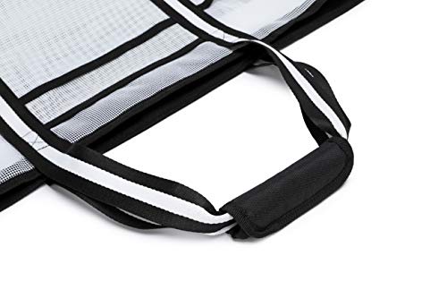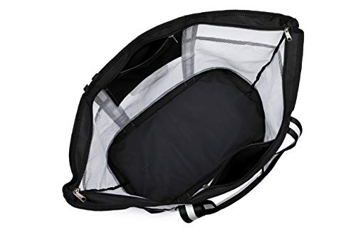 • Odporny na piasek spód konstrukcji: Dno torby pomaga chronić piasek/wodę z dala od przedmiotów, gdy umieścisz torbę plażową na piaszczystych lub mokrych powierzchniach. Koniec z przyklejaniem się piasku do mokrych strojów kąpielowych i mokrych ręczników. Siatkowa część pozwala na przedostanie się piasku, brudu i wody, dzięki czemu pozostaje czysta w środku.