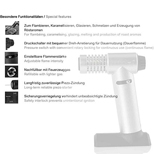 Einzelheiten: Flambierbrenner BRULÉE silber FZ62 – AdHoc Design – zum Flambieren, Karamellisieren, Glasieren und Schmelzen