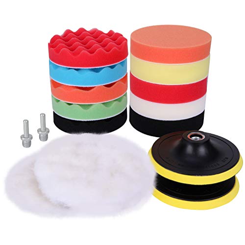 Aimocar Zestaw 16 gąbek polerskich do samochodu, 125 mm, nakładka polerska, tarcza polerska M14, adapter do wiertarki