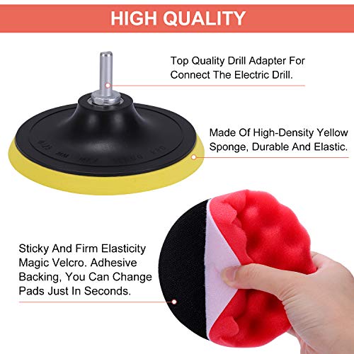 • Łatwa obsługa: poduszka polerska o delikatnej porowatości, super elastyczna i wysokiej chłonności wody. Te piankowe podkładki polerskie nadają się również doskonale do polerowania detali samochodu. Podkładki do polerowania gąbki nadają się do woskowania i polerowania wszystkich rodzajów farb lakierniczych i przyczyniają się do czyszczenia i poprawy jasności powierzchni samochodów samochodowych.