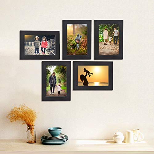 Alishomtll Ramka na zdjęcia 10 x 15 cm z płyty MDF czarna, zestaw 5 ramek na zdjęcia z drewnianą ramą z rysunkiem słojów drewna, do zawieszenia, na wiele zdjęć, wesele, Boże Narodzenie