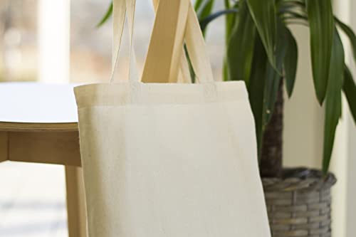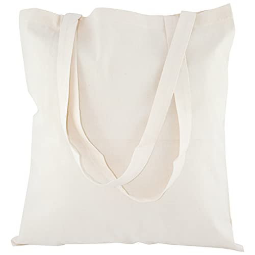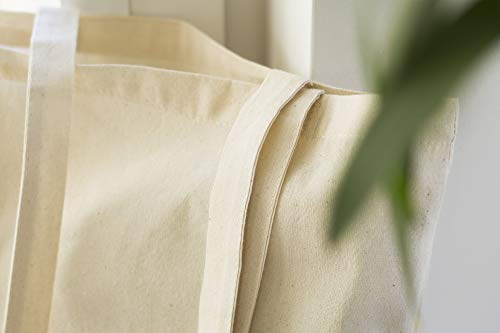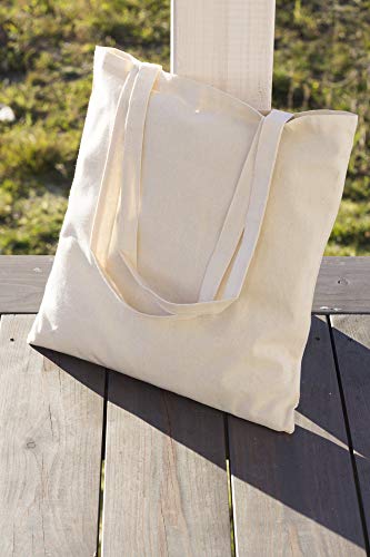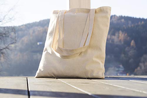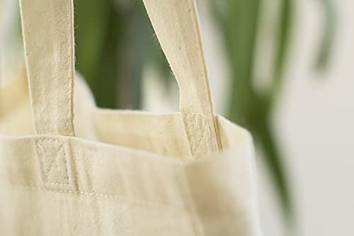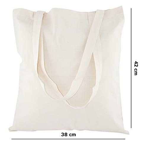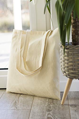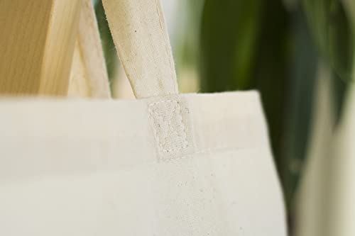 AllBags 5 szt. torba bawełniana, 380 x 420 mm (szer. x wys.), z długimi uchwytami o długości 70 cm, torba na zakupy, torba na co dzień, do pracy dla kobiet, wytrzymała torba z tkaniny do przedszkola, worek jutowy, kolor jasno – beżowy