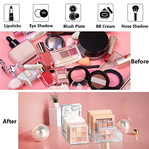 AMANMAN Paleta cieni do powiek, organizer do makijażu, przezroczysty, akrylowy, półka, z 7 przegródkami, kompaktowa, organizer na kosmetyki, taca, na cienie do powiek, puder, uchwyt na róż, 2 szt