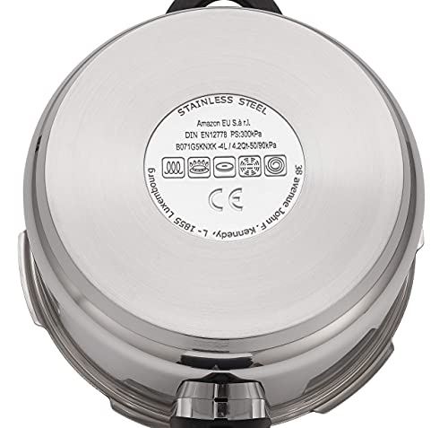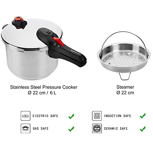 Amazon Basics Schnellkochtopf aus Edelstahl – mit Dampfgarer, induktionsgeeignet – 6 Liter