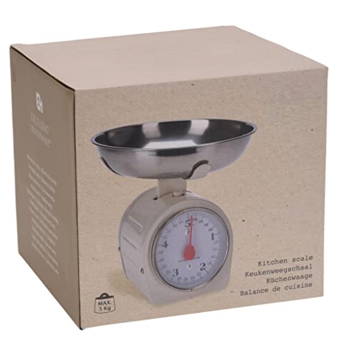 Analogowa waga kuchenna ze zdejmowaną miseczką do ważenia ze stali nierdzewnej i funkcją tary, w stylu retro, nośność: 5 kg, kolor waniliowy