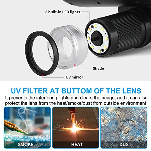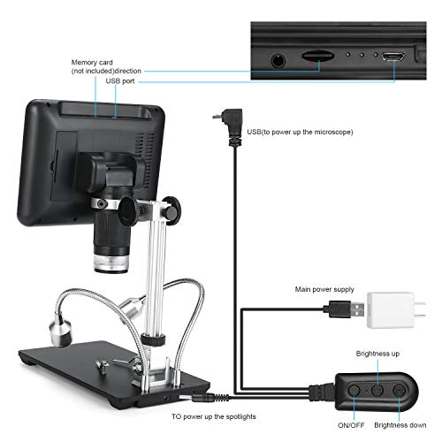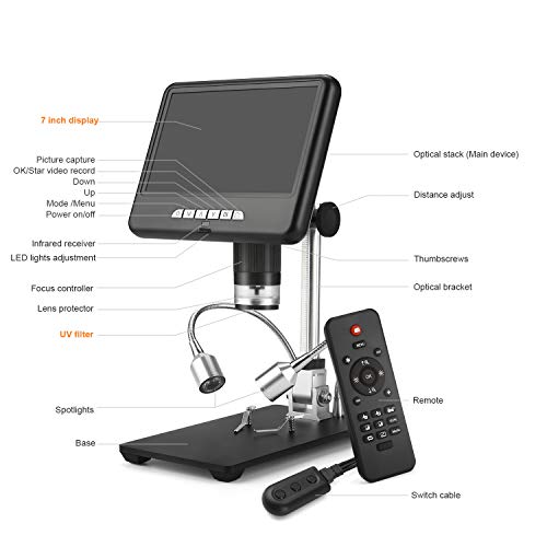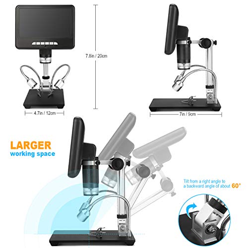 ✅ 7-calowy regulowany ekran: 7-calowy regulowany ekran LCD: Niesamowite obrazy i filmy pojawią się na 7-calowym wyświetlaczu. Do 100 x ciągłe powiększenie. Duży ekran sprawia, że większość użytkowników może używać go do naprawy płytek drukowanych bez podłączania do wyświetlacza. Duży regulowany wyświetlacz może również pomóc Ci