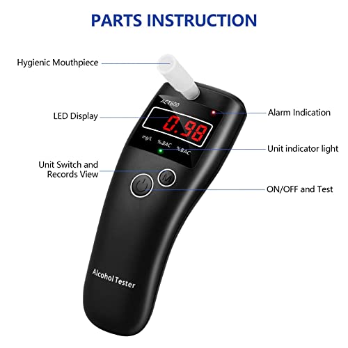 • 【Łatwa obsługa】 Alkomat we krwi jest bardzo łatwy w obsłudze. Po włączeniu i podgrzewaniu wystarczy tylko 5 sekund głęboko wdychać ustnik, a wynik zostanie wyświetlony w kilka sekund. Jego funkcja pamięci umożliwia sprawdzenie 20 niedawno przetestowanych rekordów.