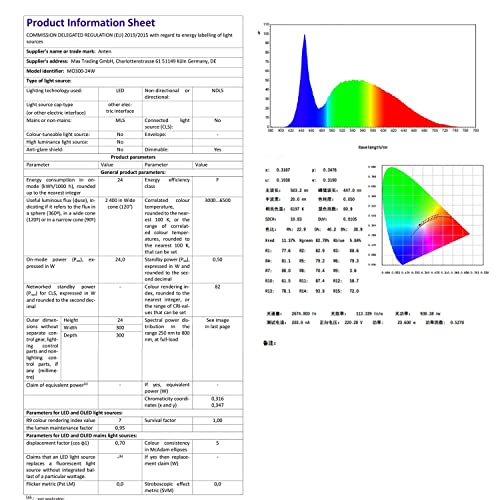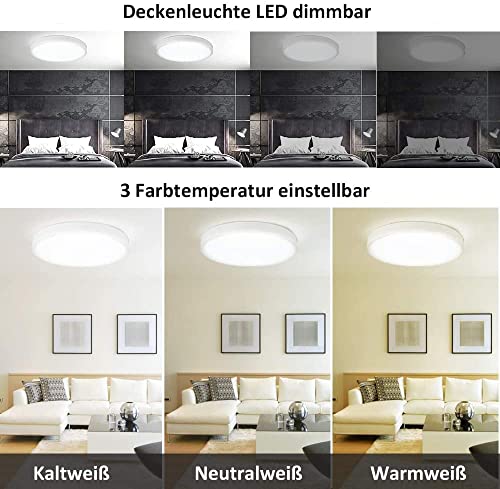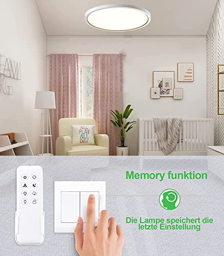 Anten Lampa Sufitowa LED, 24 W, Okrągła i Ultracienka, Ø 300 x 24 mm, 3000 K / 4000 K / 6000 K, Funkcja Ściemniania, z Pilotem Zdalnego Sterowania, do Przedpokoju, Salonu, Pokoju Dziecięcego, Kuchni, Biura lub Sypialni