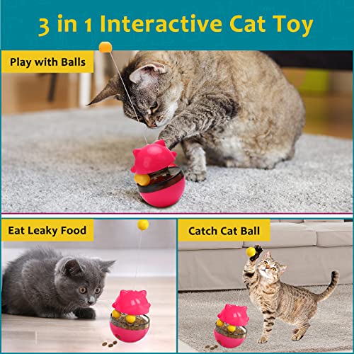 Interaktywna zabawka dla kotów, automatyczne zajęcie, 3 w 1, dozownik jedzenia, dwie zabawki Orbit-Bal (czerwony)