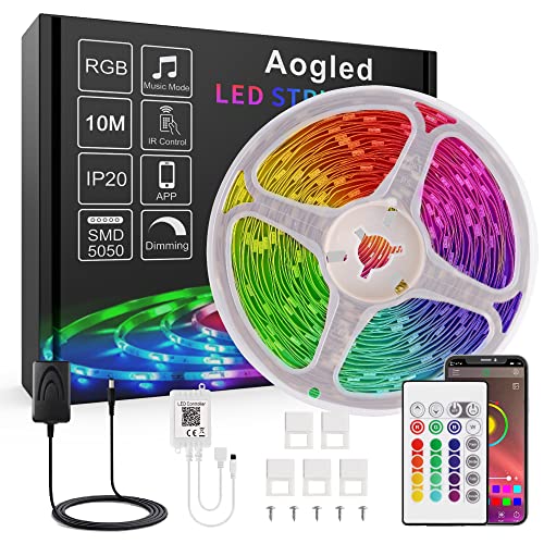 Aogled taśma LED Bluetooth 10 m,taśma świetlna LED 5050 RGB,sterowanie za pomocą aplikacji, pilot zdalnego sterowania,12 V,łańcuch świetlny LED, na imprezę, do domu itd