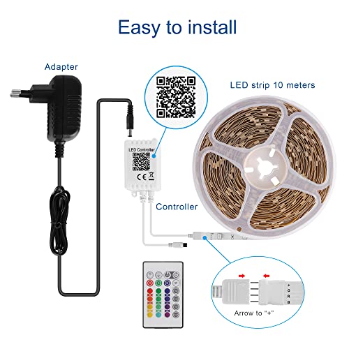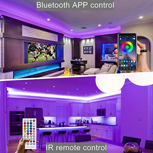 Aourow Taśma LED 10m(2 x 5 m) Samoprzylepna,Taśma LED RGB Bluetooth z Kontrolą APP i Pilotem 40-Przyciskowym,Synchronizacja z Muzyką,Listwa Świetlna SMD5050 na Imprezę,Dom,Dekoracje,Nie Wodoodporna