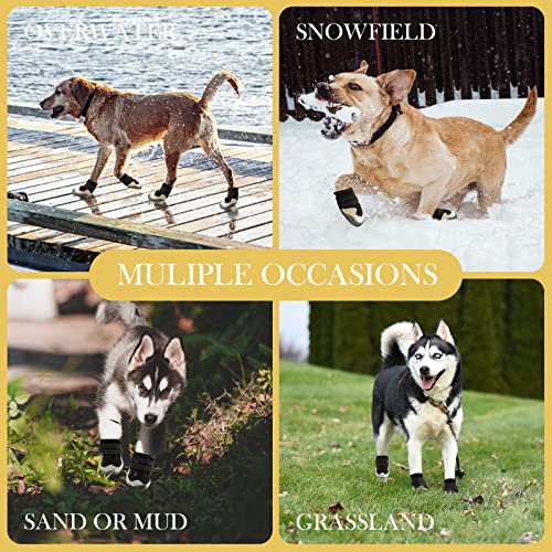 AQH Buty dla psa, 4 sztuki, oddychające buty dla psów z odblaskowymi paskami, mikrofibra, skóra, gumowa podeszwa, ochrona łap psa (B, 4#)