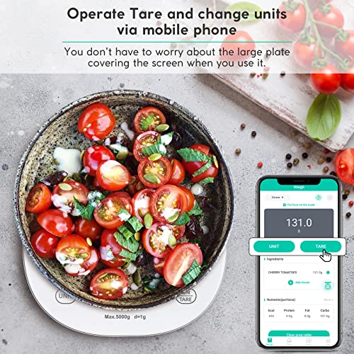 arboleaf Cyfrowa waga kuchenna, waga kuchenna z kalkulatorem odżywczym, inteligentna waga kuchenna z funkcją tary, ładowanie USB, 5 kg, biała