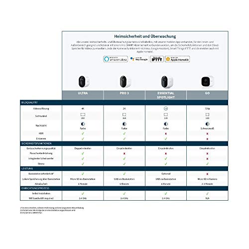 - ARLO SECURE PLAN: Melden Sie sich für einen Arlo Secure Serviceplan an, um erweiterte Kamerafunktionen freizuschalten. Gegen eine geringe monatliche Gebühr können Sie Ihre Sicherheit anpassen. Die kostenlose 90-Tage Testversion ist standardmäßig enthalten.