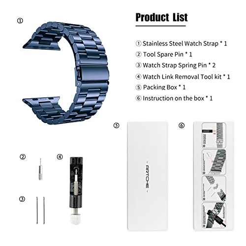 ARTCHE Pasek do zegarka Apple Watch, zapasowy pasek ze stali nierdzewnej, metalowa bransoletka, regulowany pasek na rękę, kompatybilny z iWatch Series SE 6 5 4 3 2 1