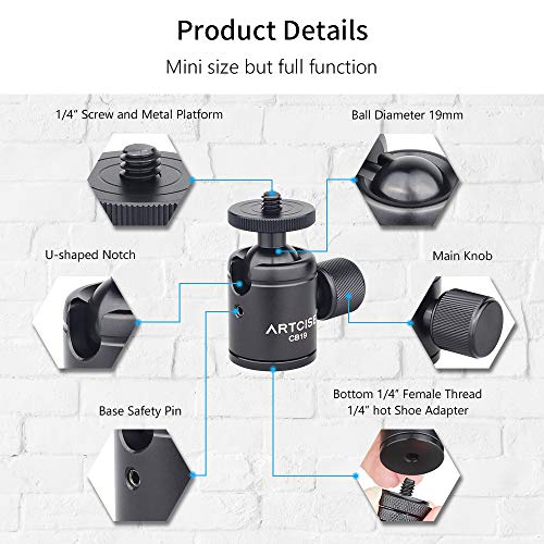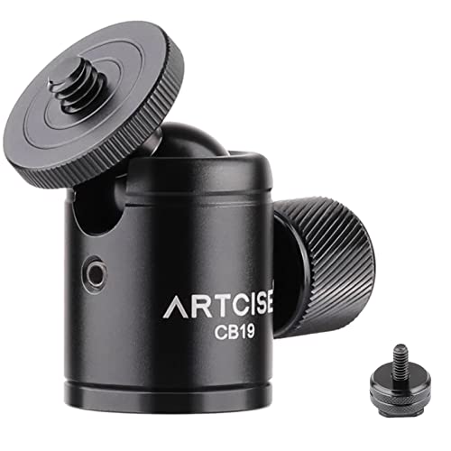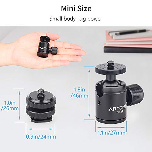 Mini głowica kulowa ARTCISE CB19 głowica kulowa ze zdejmowanym adapterem do gorącej butów 1/4, obrotowa 360 CNC panoramiczny uchwyt na kamerę kulową do smartfona / kamery DLLSR / lampy błyskowej/monitora, maksymalne obciążenie 3 kg