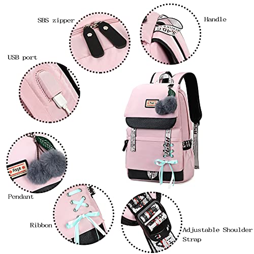 Asge Plecak szkolny dla dziewcząt, tornister szkolny o ergonomicznym wzornictwie, plecak szkolny, plecak na kampus, nylonowy, wodoszczelny, plecak na co dzień, dla nastolatków, modny plecak szkolny,