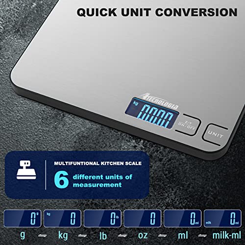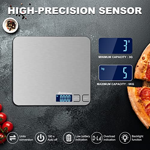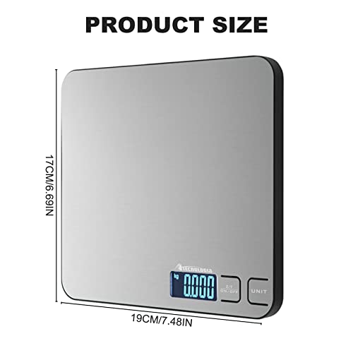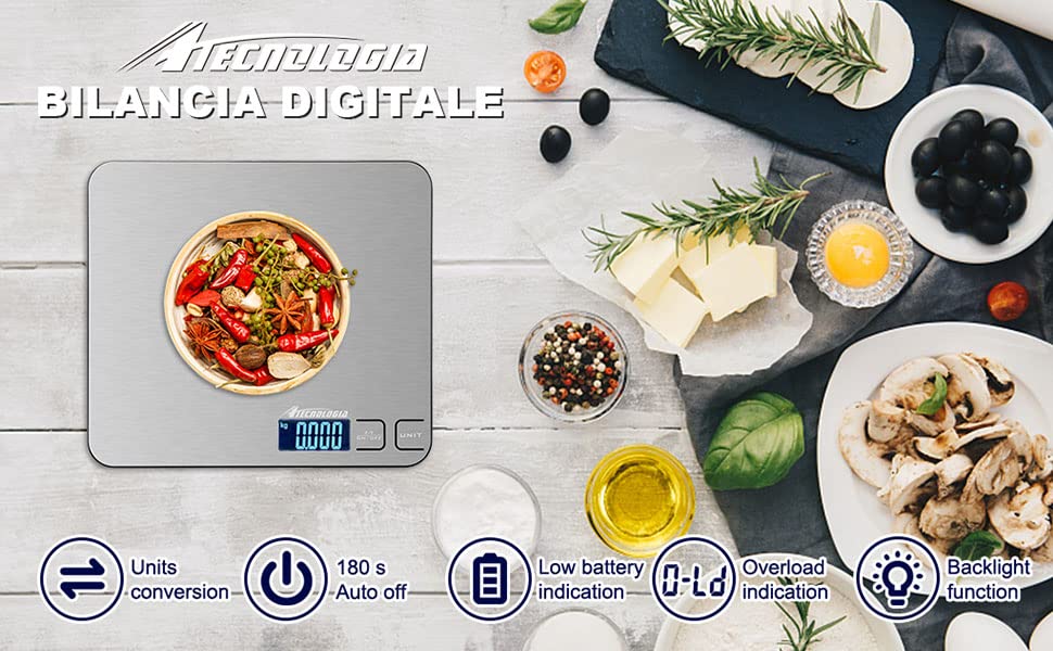 Atechnologia Cyfrowa waga kuchenna 5kg z ekranem LCD, funkcja TARA, 6 jednostek miary powierzchni ze stali nierdzewnej 19x17cm