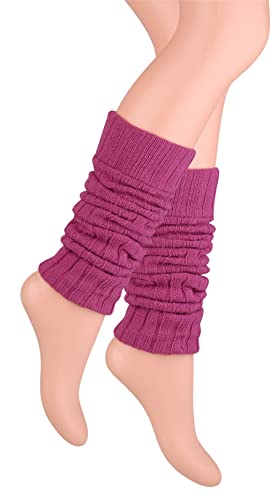 Ateena Wełniane dzianinowe ocieplacze na długie nogi dla kobiet i dziewcząt, ogrzewacze do kostek, wysokie skarpety do kolan bez stóp, maksymalny obwód łydki-37 cm długość – 60 cm, różne kolory, Berry_A, S-M