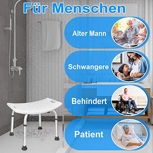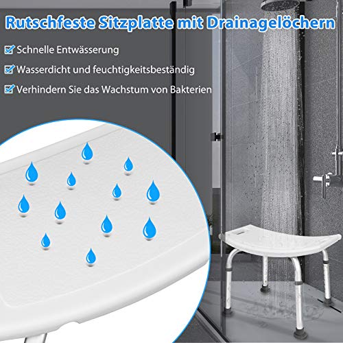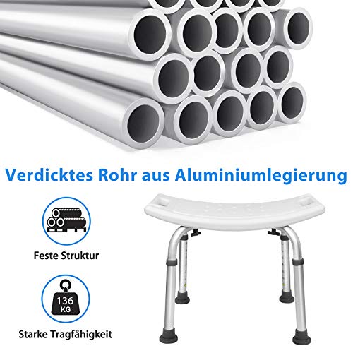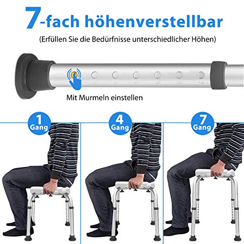AUFUN Duschhocker Duschstuhl 38-53cm Höhenverstellbar Duschhocker Anti-Rutsch Badsitz Duschhilfe Duschsitz aus Alu und Kunststoff für Alter, Schwangere