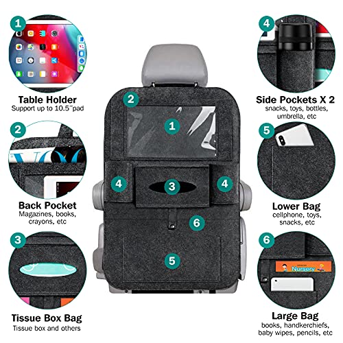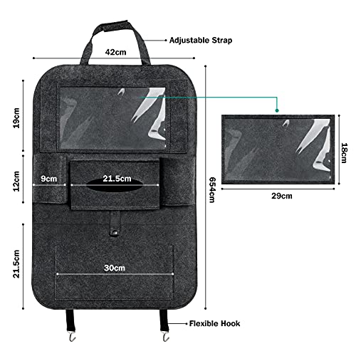 Auto Organizer, 2 Stück Groß Autositz Organizer, Auto Rückenlehnenschutz Kinder, Sitzschutz Autositzschoner Rückenlehne, Rücksitz Organizer aus Filz mit Durchsichtigem Pad-Tablet-Halter