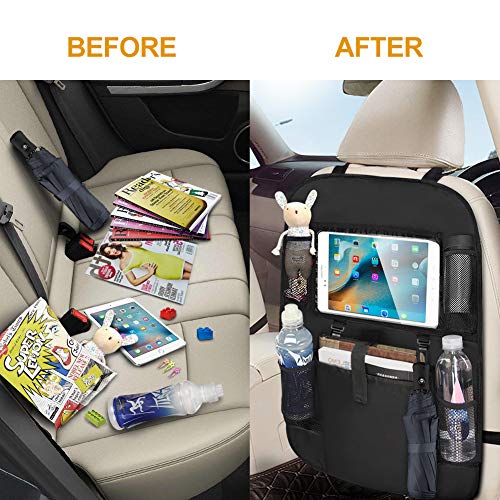 Auto Rückenlehnenschutz 2 Stück Autositz Organizer Wasserdichter Rücksitzschoner für Kinder Kick Matten Schutz für Autositz mit Durchsichtigem Große Taschen und iPad-Tablet-Halter