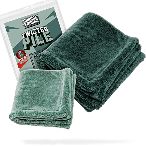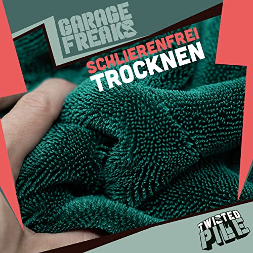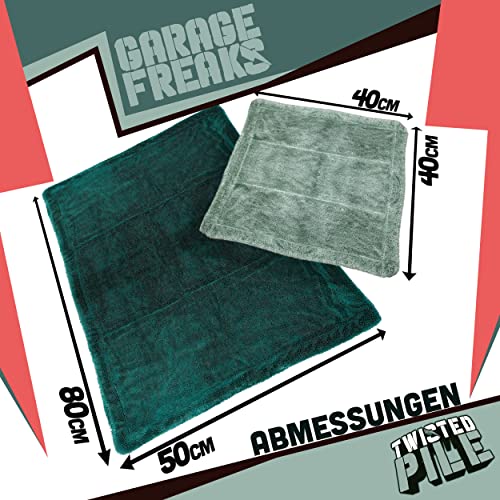 Ściereczka do osuszania samochodu, zestaw 2 szt. – Twisted Pile Towel – 1 x ręcznik XXL z mikrofibry o wymiarach 50 x 80 cm, 1 x 40 cm, 1500 g/m² – ręcznik do efektywnego i delikatnego suszenia – Garage Freaks