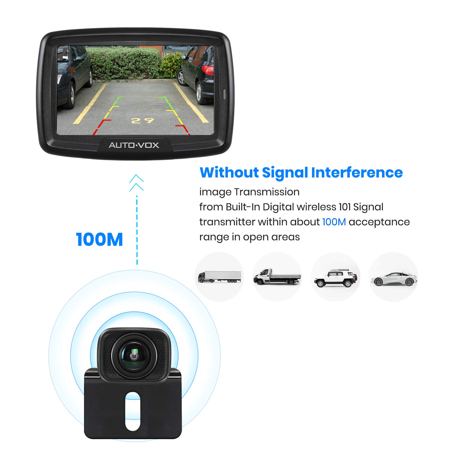 AUTO-VOX CS-2 Cyfrowa Bezprzewodowa Kamera Cofania 4,3 Cala, Z Supernoktowizorem, Z Wbudowanym Nadajnikiem I Monitorem Kamery Zapasowej,Nadaje Się Do SamochodóW CiężArowych/Suv/VanóW