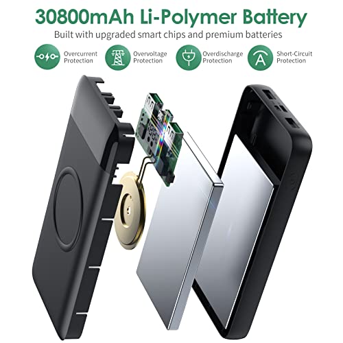 AXNEB Bezprzewodowy powerbank 25 W PD3.0 + QC4.0, 15 W ładowarka bezprzewodowa 30,800 mAh Powerbank 4 wyjścia USB C zewnętrzny akumulator z wyświetlaczem LCD, kompatybilny z iPhone Huawei Samsung S20 iPad Oppo Xiaomi Tablet