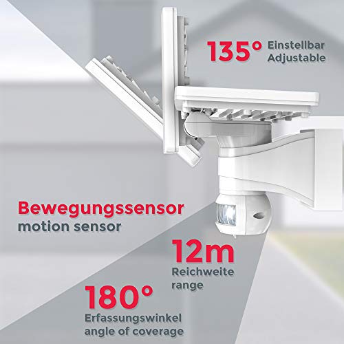 eigenen vier Wände. Der integrierte Bewegungsmelder erfasst einen Bereich von bis zu 12 Metern und flutet diesen Bereich mit hell