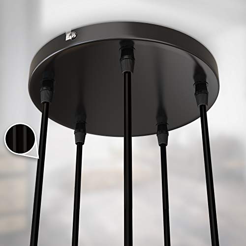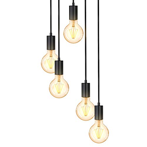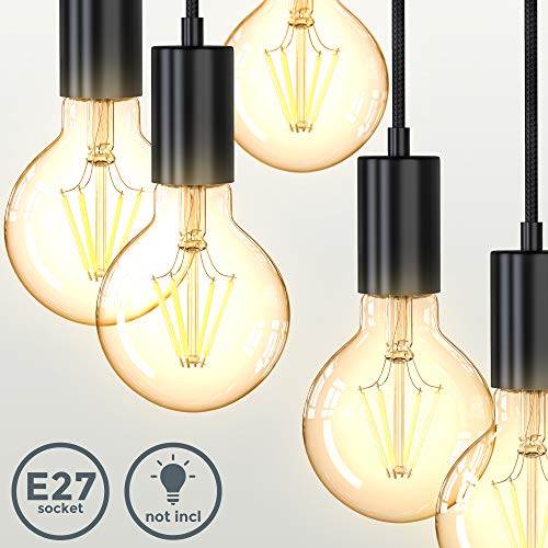 B.K.Licht Lampa sufitowa w stylu vintage, 5 gniazd E27, różne wysokości, wisząca lampa abażur w kolorze matowym czarnym metalu, retro lampa sufitowa pasuje do jadalni, Ø 20 cm, całkowita wysokość 120 cm