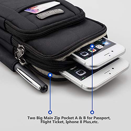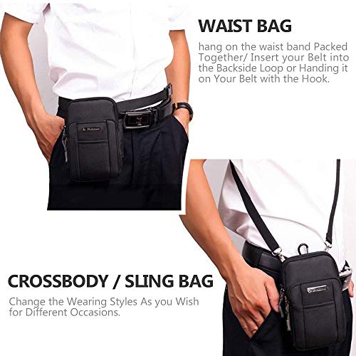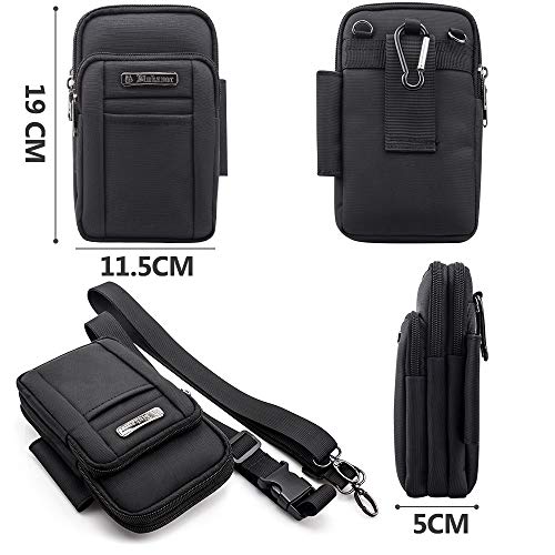 • Mały rozmiar z praktycznym pojemnym pomieszczeniem: Wymiary 19 x 11,5 x 5 cm, pasuje do większości dużych telefonów komórkowych z etui na telefon komórkowy, np. iPhone X / 8 Plus, iPhone 7 Plus, iPhone 6s Plus, Samsung Galaxy S8, banki energetyczne, szkło słoneczne, papierosy, klucze, dowód osobisty i wiele innych.