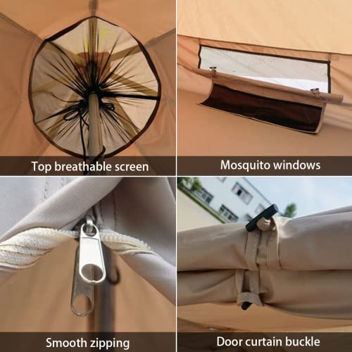 • Ten 4-osobowy namiot ma średnicę 3,5 m i wysokość 2,1 m. Jest dostarczany z torbą do łatwego transportu. Idealnie nadaje się na kemping, wędrówki, wędkowanie, polowanie i wspinaczkę górską, jest to dobry namiot kempingowy.
